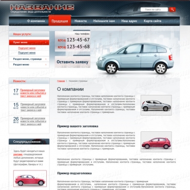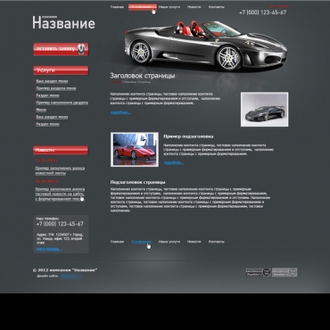 Прорисовка сайта в фотошоп (PSD) тематика Автомобили, мотоциклы