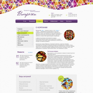 Прорисовка сайта в фотошоп (PSD) тематика Витражи