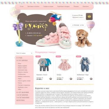 Прорисовка сайта в фотошоп (PSD) тематика Детская одежда и обувь