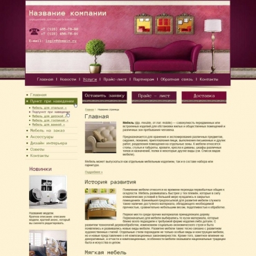 Прорисовка сайта в фотошоп (PSD) тематика Мебель для дома и офиса
