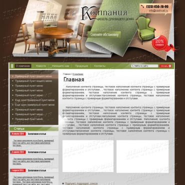 Прорисовка сайта в фотошоп (PSD) тематика Мебель для дома и офиса