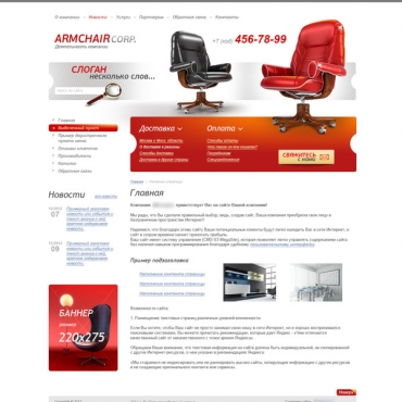 Прорисовка сайта в фотошоп (PSD) тематика Мебель для дома и офиса