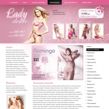 Прорисовка сайта в фотошоп (PSD) тематика Нижнее бельё