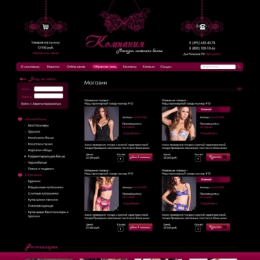 Прорисовка сайта в фотошоп (PSD) тематика Нижнее бельё