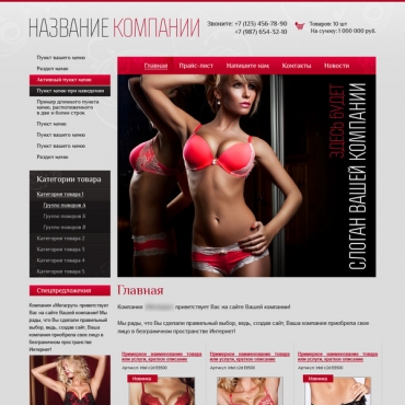 Прорисовка сайта в фотошоп (PSD) тематика Нижнее бельё