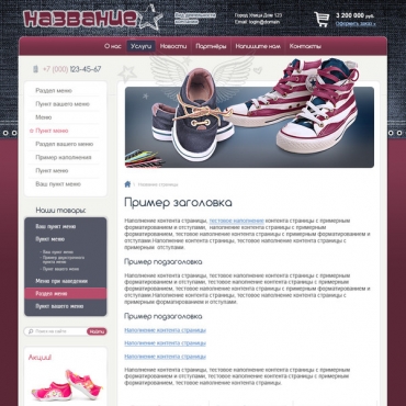 Прорисовка сайта в фотошоп (PSD) тематика Обувь