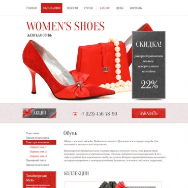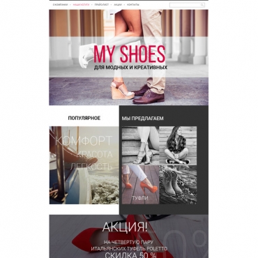Прорисовка сайта в фотошоп (PSD) тематика Обувь