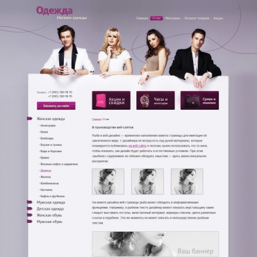 Прорисовка сайта в фотошоп (PSD) тематика Одежда, белье