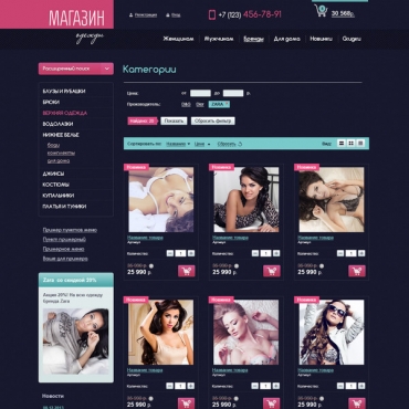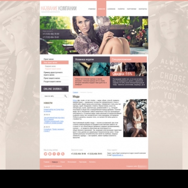 Прорисовка сайта в фотошоп (PSD) тематика Одежда, белье