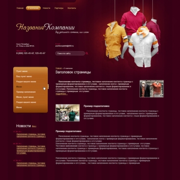 Прорисовка сайта в фотошоп (PSD) тематика Одежда, белье