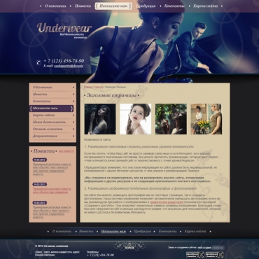 Прорисовка сайта в фотошоп (PSD) тематика Одежда, белье