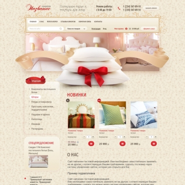 Прорисовка сайта в фотошоп (PSD) тематика Постельное бельё и текстиль для дома