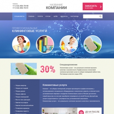 Прорисовка сайта в фотошоп (PSD) тематика Профессиональная уборка (клининг)