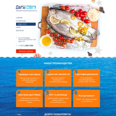 Прорисовка сайта в фотошоп (PSD) тематика Рыбная продукция