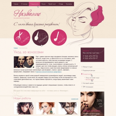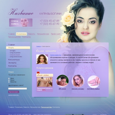 Прорисовка сайта в фотошоп (PSD) тематика Салон красоты, солярий, ногтевая студия
