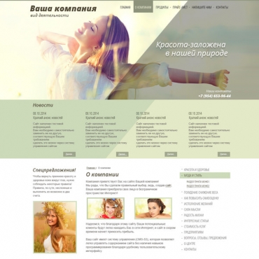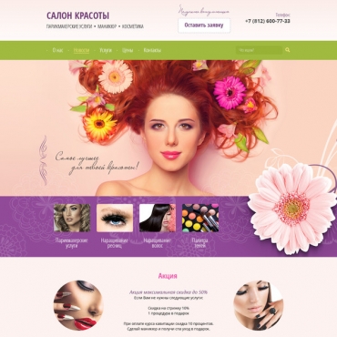 Прорисовка сайта в фотошоп (PSD) тематика Салон красоты, солярий, ногтевая студия