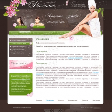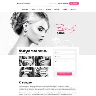 Прорисовка сайта в фотошоп (PSD) тематика Салон красоты, солярий, ногтевая студия