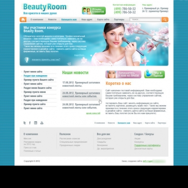 Прорисовка сайта в фотошоп (PSD) тематика Салон красоты, солярий, ногтевая студия