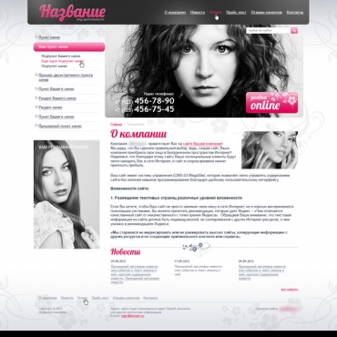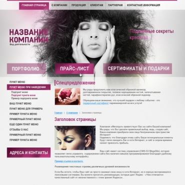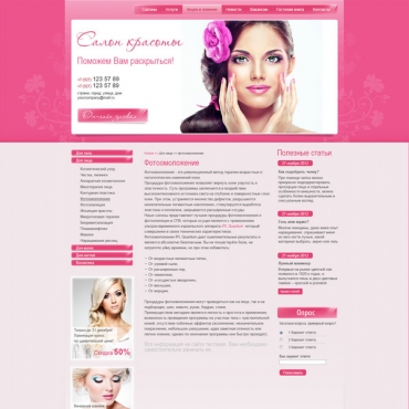 Прорисовка сайта в фотошоп (PSD) тематика Салон красоты, солярий, ногтевая студия