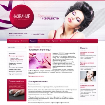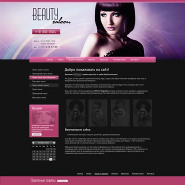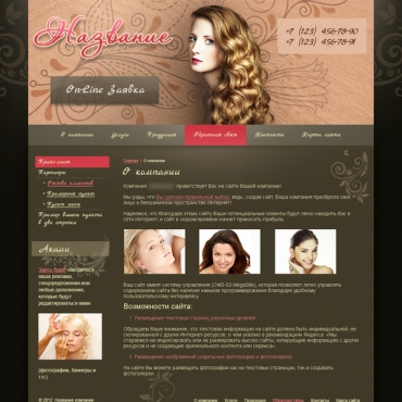 Прорисовка сайта в фотошоп (PSD) тематика Салон красоты, солярий, ногтевая студия