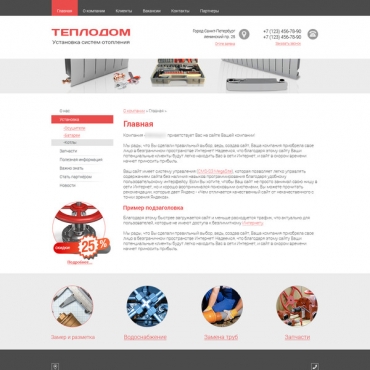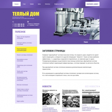 Прорисовка сайта в фотошоп (PSD) тематика Системы отопления, водоснабжения, канализации