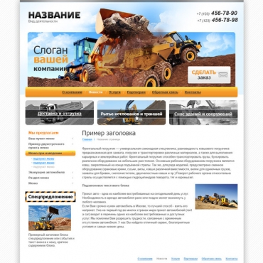 Прорисовка сайта в фотошоп (PSD) тематика Спецтехника, запчасти