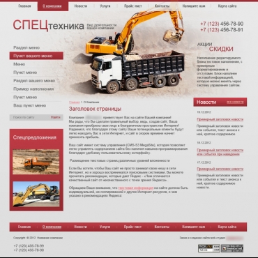 Прорисовка сайта в фотошоп (PSD) тематика Спецтехника, запчасти