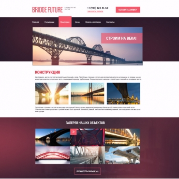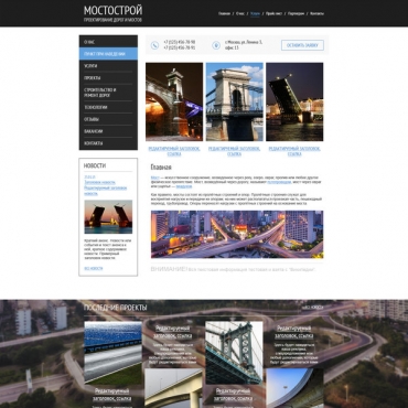 Прорисовка сайта в фотошоп (PSD) тематика Строительство мостов, путепроводов, метрополитена