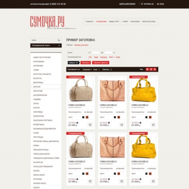 Прорисовка сайта в фотошоп (PSD) тематика Сумки, кожгалантерея
