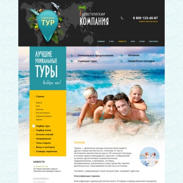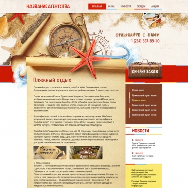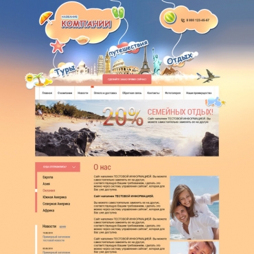 Прорисовка сайта в фотошоп (PSD) тематика Туристические агентства, услуги