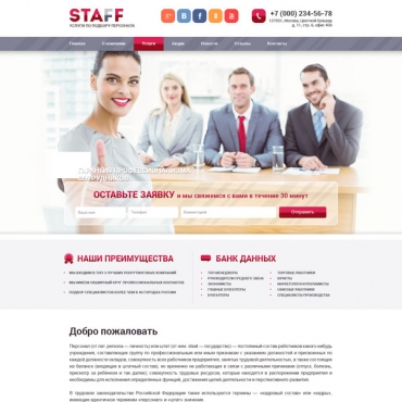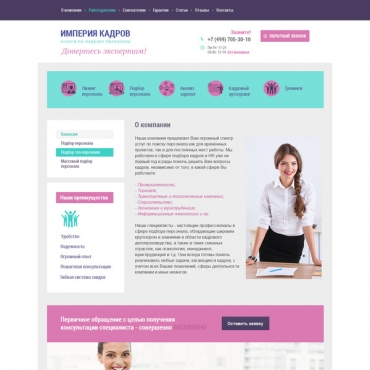 Прорисовка сайта в фотошоп (PSD) тематика Услуги по подбору персонала