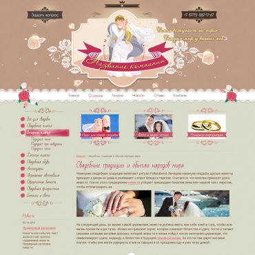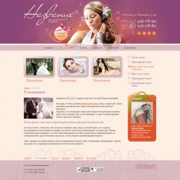 Прорисовка сайта в фотошоп (PSD) тематика Услуги свадебного салона