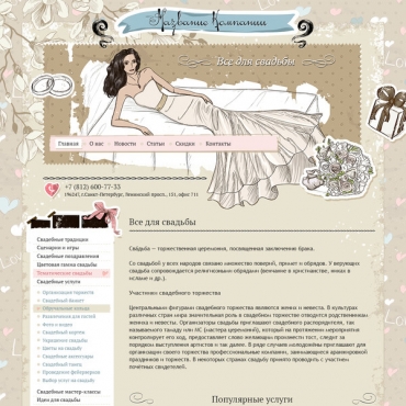 Прорисовка сайта в фотошоп (PSD) тематика Услуги свадебного салона