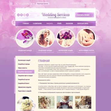 Прорисовка сайта в фотошоп (PSD) тематика Услуги свадебного салона