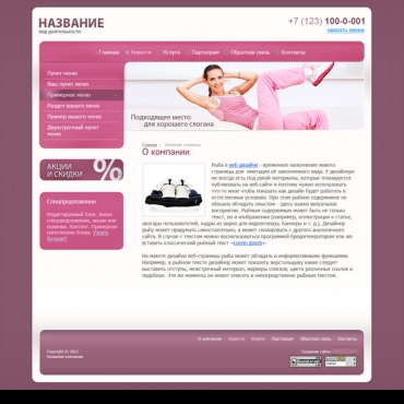 Прорисовка сайта в фотошоп (PSD) тематика Фитнес-центры