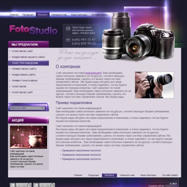 Прорисовка сайта в фотошоп (PSD) тематика Фотоуслуги, видеосъемка