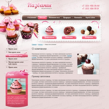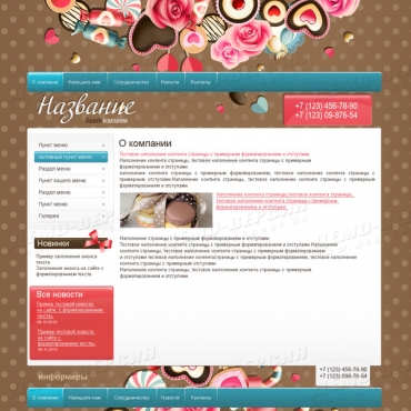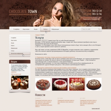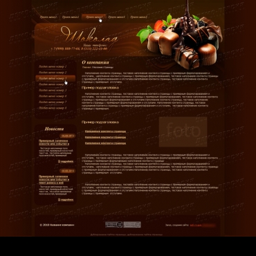 Прорисовка сайта в фотошоп (PSD) тематика Шоколад