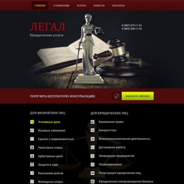 Прорисовка сайта в фотошоп (PSD) тематика Юридические и адвокатские услуги