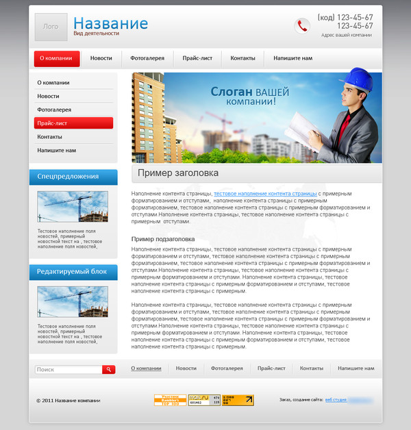 Шаблон (№10330) для сайта тематики "Строительство зданий и сооружений". Номер шаблона 10330. Обратитесь за подробностями к нашим специалистам.