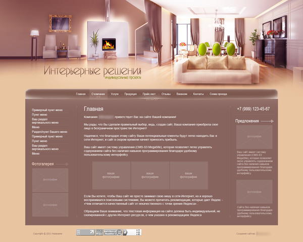 Шаблон (№11259) для сайта тематики "Предметы интерьера". Номер шаблона 11259. Обратитесь за подробностями к нашим специалистам.