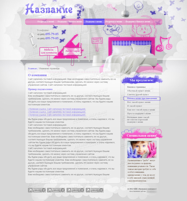 Сайт создаётся на русском языке, дизайн сайта изменяться по желанию заказчика (заменяются изображения и редактируются стили элементов).