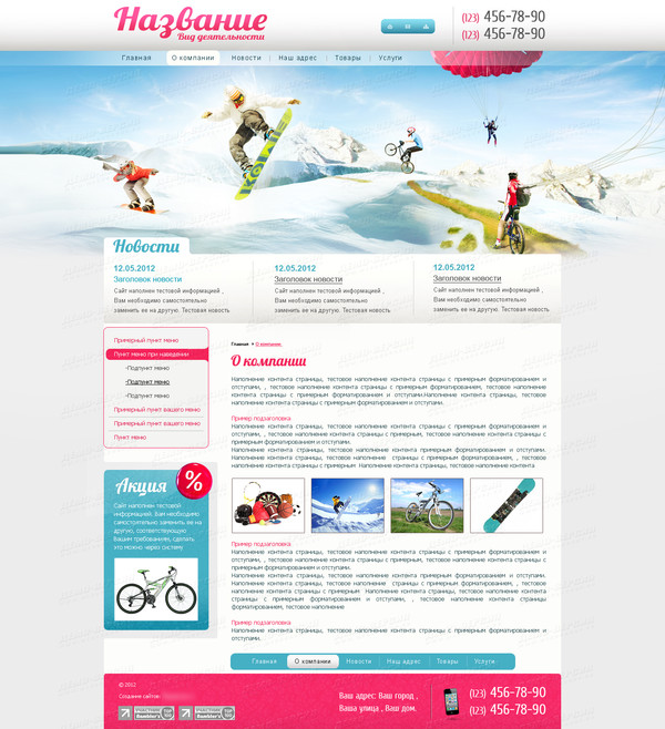 Шаблон (№14816) для сайта тематики "Спортивное оборудование и инвентарь". Номер шаблона 14816. Обратитесь за подробностями к нашим специалистам.
