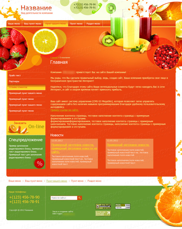 Демо сайт Сайт создаётся на русском языке, дизайн сайта изменяться по желанию заказчика (заменяются изображения и редактируются стили элементов).