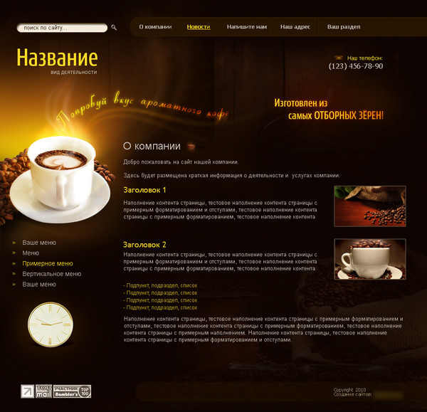 Шаблон (№14) для сайта тематики "Чай, кофе, какао". Номер шаблона 14. Обратитесь за подробностями к нашим специалистам.