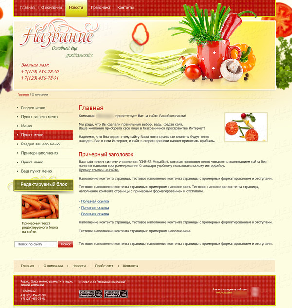 Шаблон (№16290) для сайта тематики "Овощи, фрукты, орехи, грибы". Номер шаблона 16290. Обратитесь за подробностями к нашим специалистам.