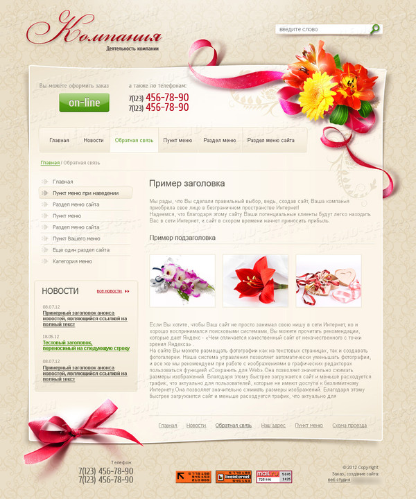 Шаблон (№16394) для сайта тематики "Цветы, растения, доставка цветов". Номер шаблона 16394. Обратитесь за подробностями к нашим специалистам.