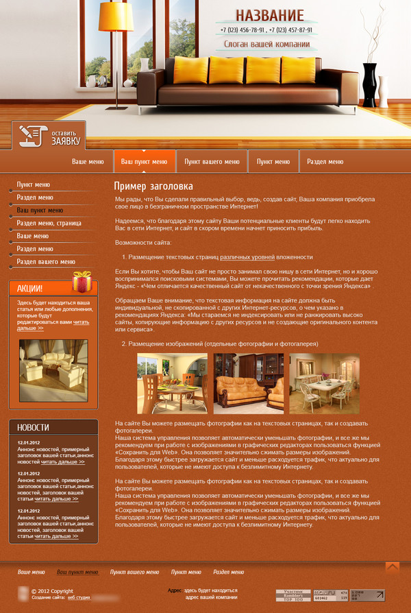 Шаблон (№19243) для сайта тематики "Магазины мебели и предметов интерьера". Номер шаблона 19243. Обратитесь за подробностями к нашим специалистам.