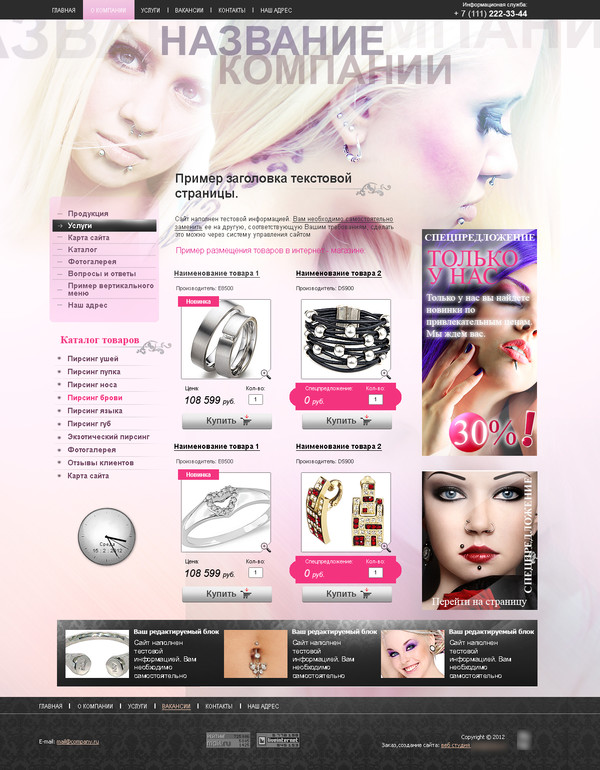 Сайт создаётся на русском языке, дизайн сайта изменяться по желанию заказчика (заменяются изображения и редактируются стили элементов).