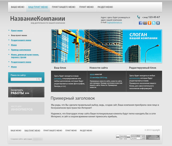 Сайт создаётся на русском языке, дизайн сайта изменяться по желанию заказчика (заменяются изображения и редактируются стили элементов).
