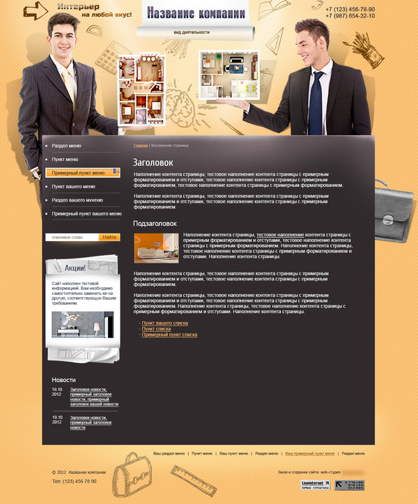 Демо сайт Сайт создаётся на русском языке, дизайн сайта изменяться по желанию заказчика (заменяются изображения и редактируются стили элементов).